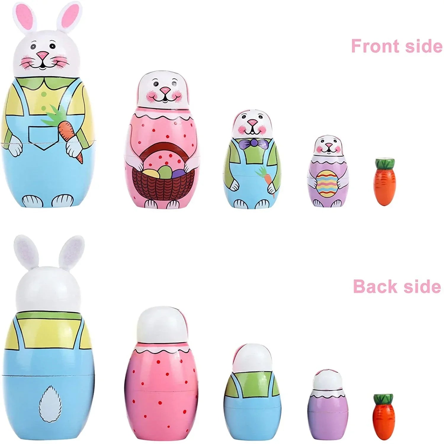 • PACKING INCLUDES: 5 pack cute rabbits and carrot nesting dolls.