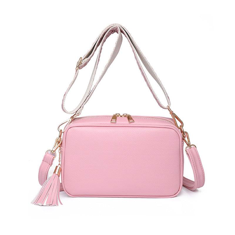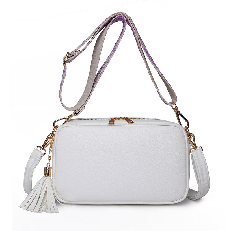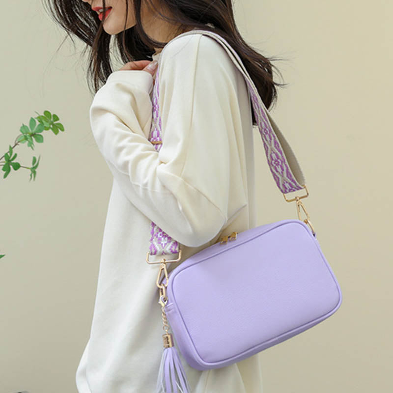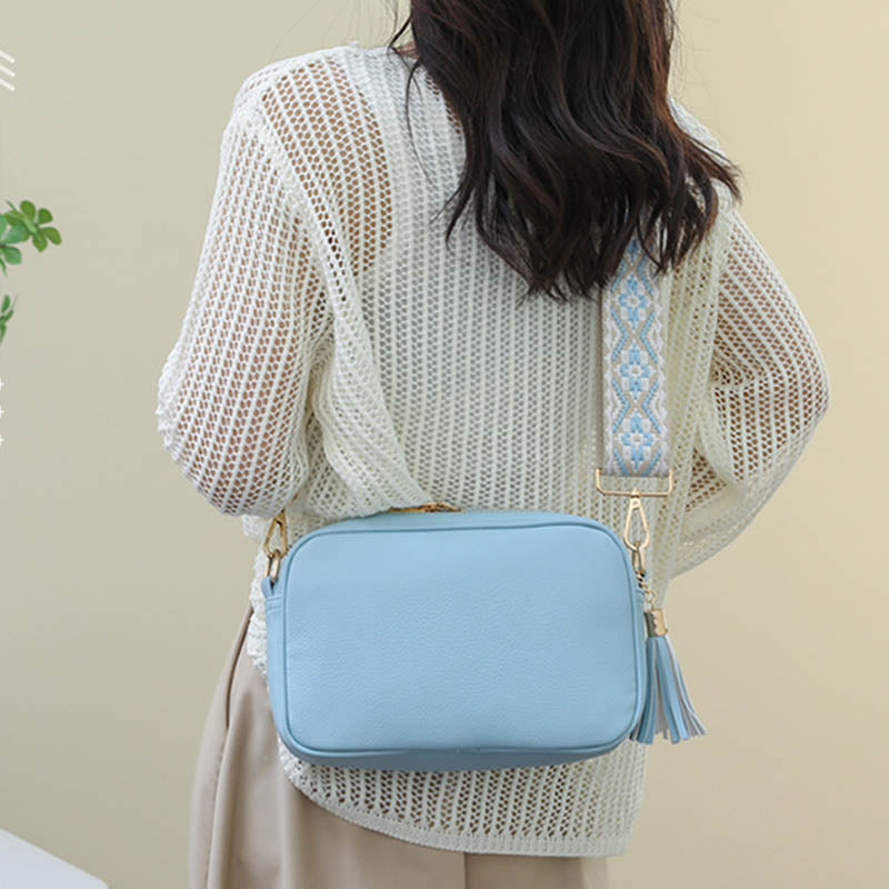 The PU Leather crossbody bag is so soft and dreamy. Comes with two fun straps and shiny gold classic hardware! You can mix and match with solid color straps or colored straps at will, whichever one will make you stand out.